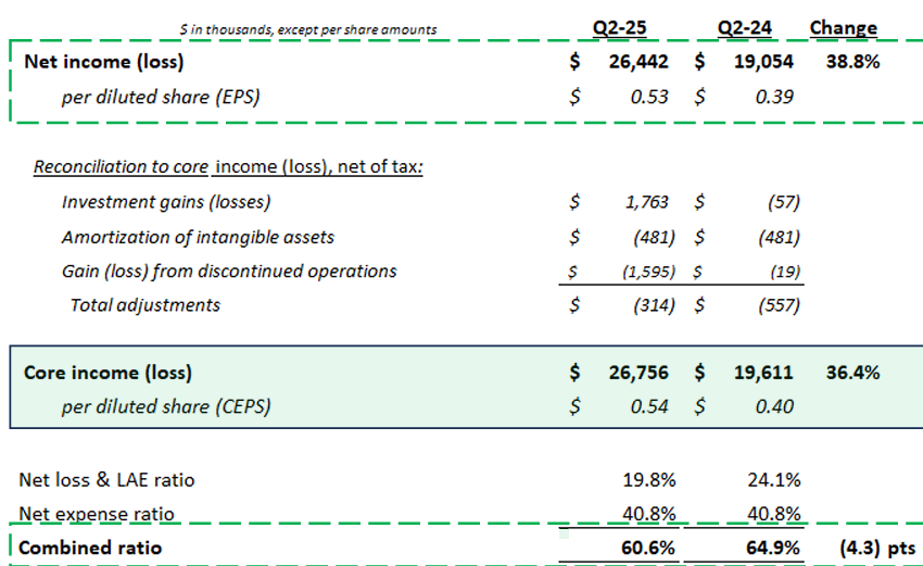 Overall, I could not be happier with the results American Coastal reported for the second quarter. The core insurance business continues to churn out meaningful returns on equity despite an overall weakening price environment while the balance sheet continues to retain meaningful cash and insulate the business from the worst effects of the Florida Hurricane market. In addition, the Managing General Underwriter, Skyway is showing great results and is on track to meet internal performance targets while avoiding rate chase and sticking to sound underwriting principles.