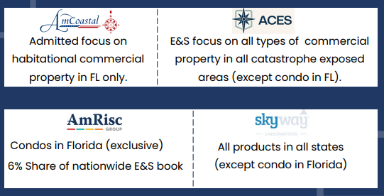 Ever since the spin off American Coastal has been in the process of transforming from a small subsidiary of a much larger personal lines company to a stand-alone niche underwriter focused on underwriting profit and generating “broker-style” fees from its new venture into the Managing General Agent (MGA) business. In addition to the MGA opportunity Skyway that we will discuss in detail later on, American Coastal management recently announced new Excess and Surplus opportunities as well through American Coastal Excess & Surplus (ACES) as well as a 6% co-participation in their longtime partner AmRisc’s billion dollar plus E&S book nationwide.