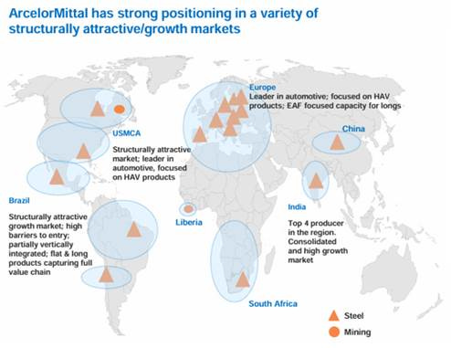 Arcelor Mittal is the second largest producer of steel in the world, and the largest in the work ex-China producing 70M crude tons of steel for the full year 2024. The business has a vast footprint with 130K employees across four continents with integrated mini mill capacity and raw material capabilities providing a sustainable cost advantage on a cash cost per ton basis. Arcelor Mittal competes in what I consider to be the best markets for steel demand growth in the world with 60% of EBITDA coming from North America, Brazil, and India. For a laundry list of reasons, we believe the markets ArcelorMittal serves are advantaged for the next decade and despite weakness in steel related equities since the Global Financial Crisis, this business is poised to generate outsized returns through the next decade. Originally known for buying underperforming steel assets globally, cutting costs by reducing headcount and adding efficiencies, Mittal Steel has transformed itself through a few key acquisitions (most importantly Arcelor itself) to become one of the best steel producers in the world today with competitive advantages and the ability to grow its earnings further with growth capex projects that we think could double the businesses steady state earnings in the coming 3-5 year period.