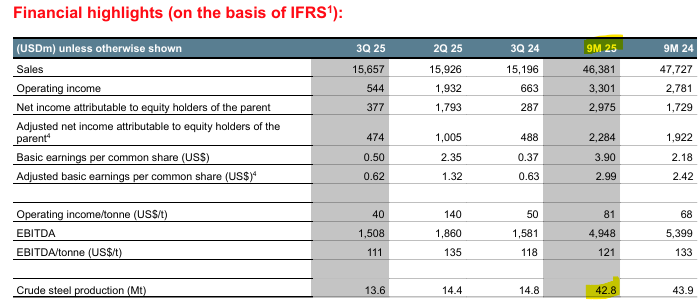 The company’s organic growth projects are anticipated to add $800M of EBITDA in 2026. Arcelor Mittal reports earnings on February 5th for the full year 2025 and we intend to post an update if we find it value add to our readers to do so. In addition to the financial performance, we would also like to note the debt offering the company issued in September of 2025. It was a $767M USD ($650M euro) raise with a 3.250% coupon. The debt was used to refinance some existing debt and also to fund general corporate expenditure.