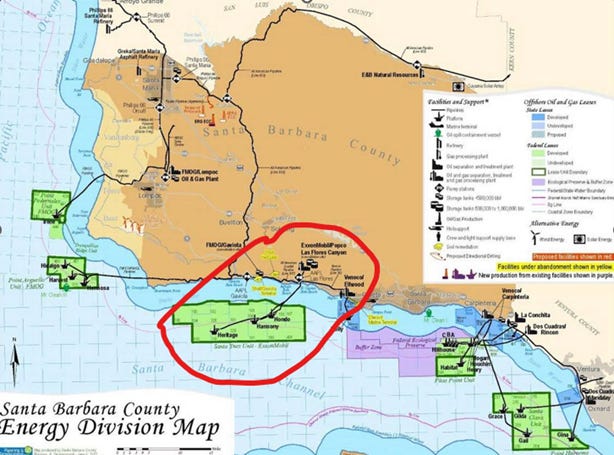 In 1988 a legal battle over the construction of a new pipeline in Santa Barbra County (the county) set the stage for a barrage of legal feuds that lead us to the present day. Celeron Pipeline Co. V County of Santa Barbra was a long dated, fierce legal battle over the ability to install and operate an interstate pipeline. This lawsuit led to a settlement called “The Celeron Agreement” that would limit the scope of local authority over the pipeline and associated safety features. Celeron Pipeline Co. (an affiliate of Exxon) constructed a 24-inch pipeline that attached Exxon’s Santa Ynez offshore platforms to the onshore pipeline processing facility in Las Flores Canyon. From the period of 1981 to 2014 the SYU assets produced 671MMboe of oil and gas, averaging 27MMcf natural gas and 29MBbls of oil and condensates per day.