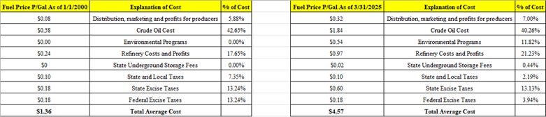 Likewise, California is the only state to mandate specialized reformulated gasoline blends. Reformulated gasoline alone costs roughly $0.30 more per gallon than conventional fuel, and California’s blend is already the most expensive in the nation. Cap-and-Trade obligations, seasonal adjustments, and at-berth emissions require further inflate costs. Collectively, these policies create a scenario where state directed compliance burdens often exceed refinery profits, illustrating how policy choices dominate the price at the pump rather than free markets.